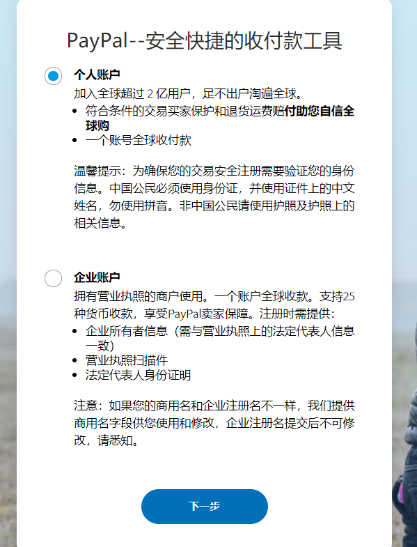 1、拥有上述任何一家银行的储蓄卡,然后点击注册地址,如图,个人用户选第一个,然后点击下一步
